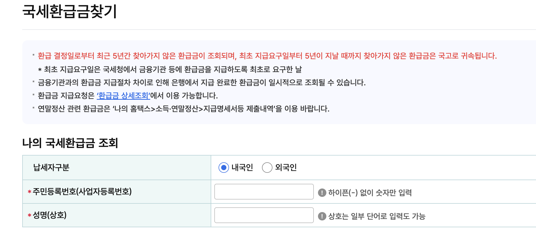 - 환급금은 신청하지 않으면 소멸될 수 있습니다.