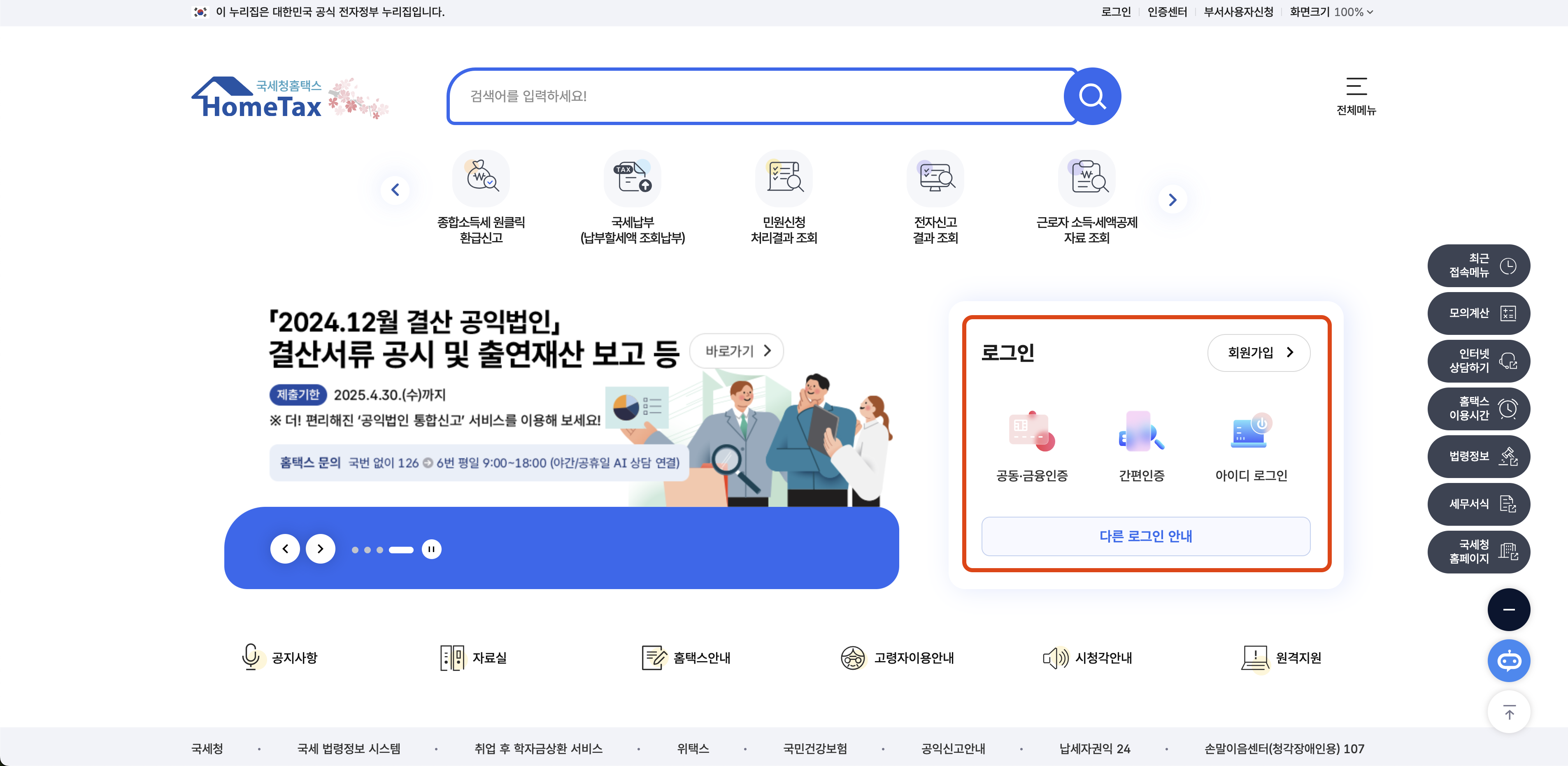 - 홈택스 접속