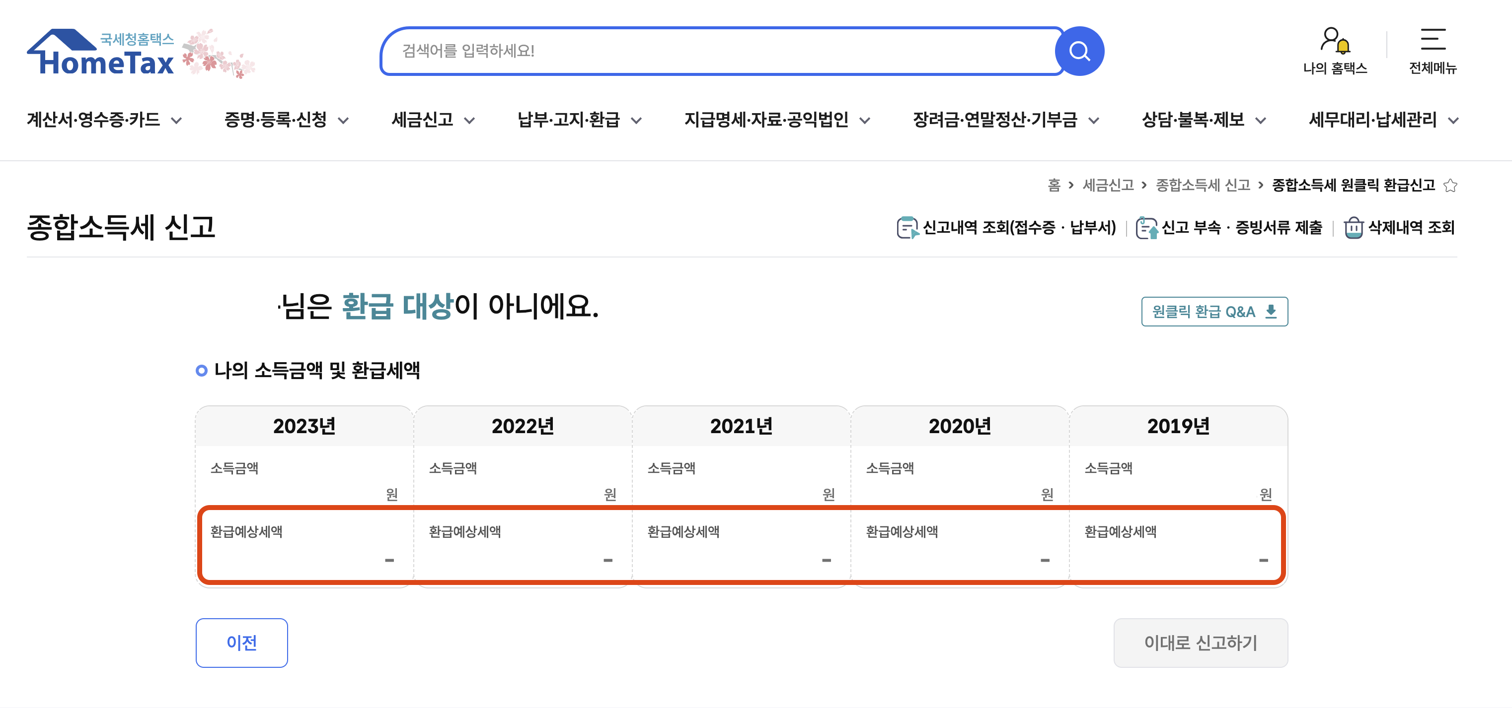 - ‘원클릭 환급신고’ 클릭