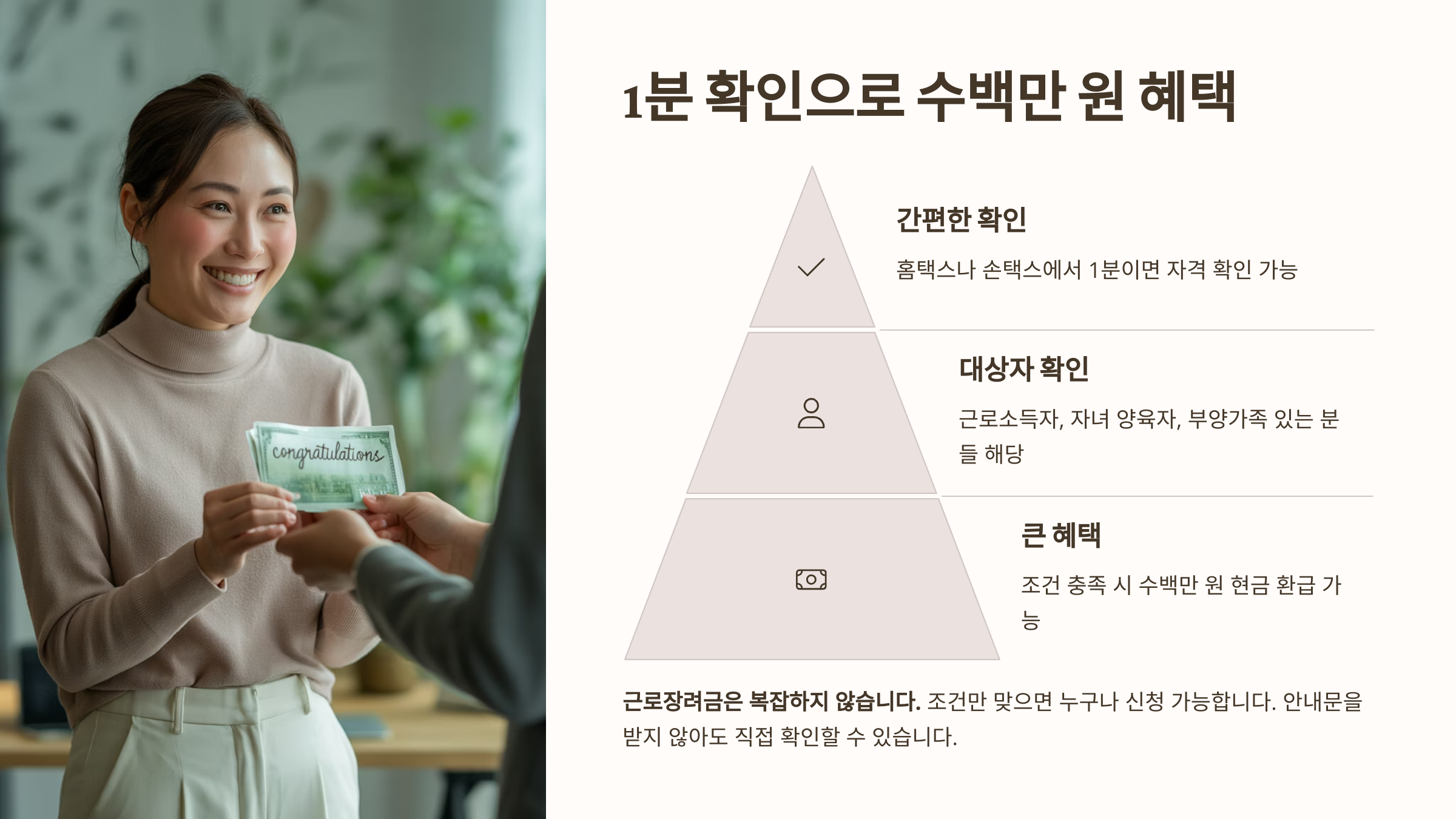 이 3가지만 해당해도, 대상일 수 있습니다. 지금 홈택스 또는 손택스에서 1분이면 확인 가능합니다.
