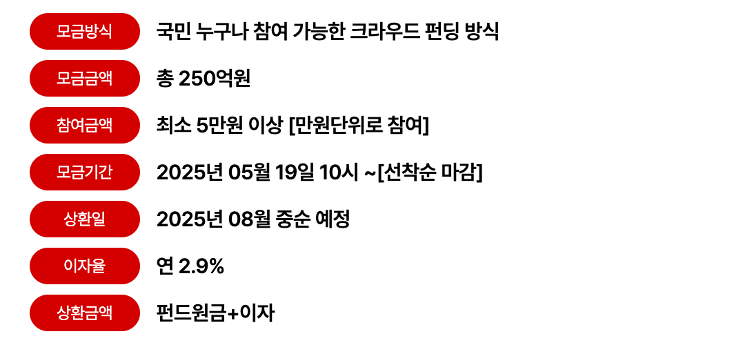 - 펀드 마감 여부, 상환일정 등은 추후 별도 안내
