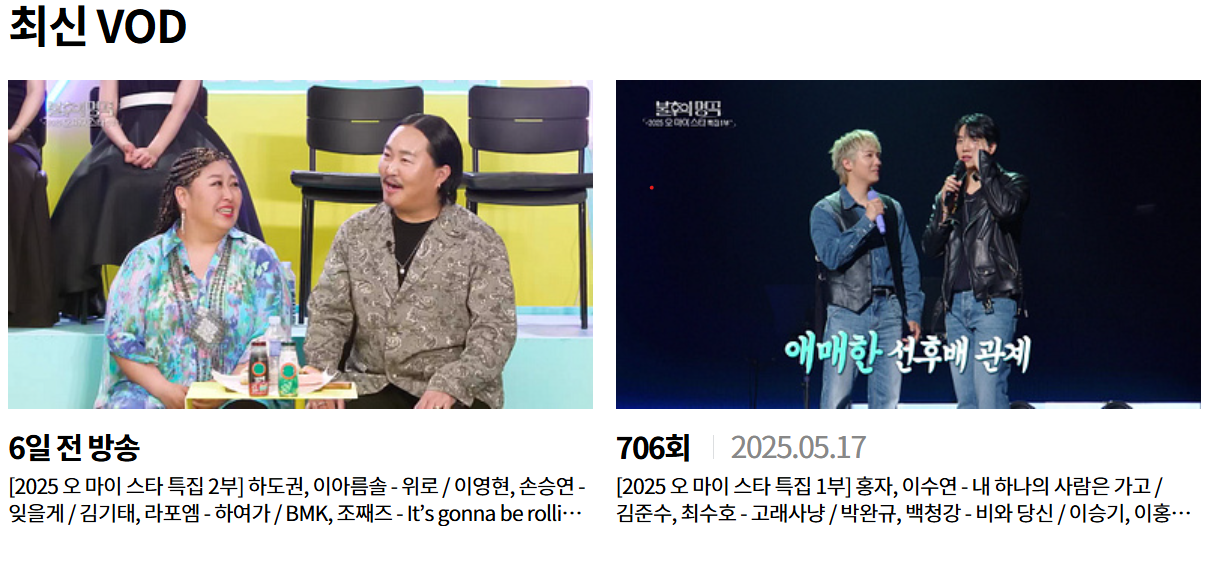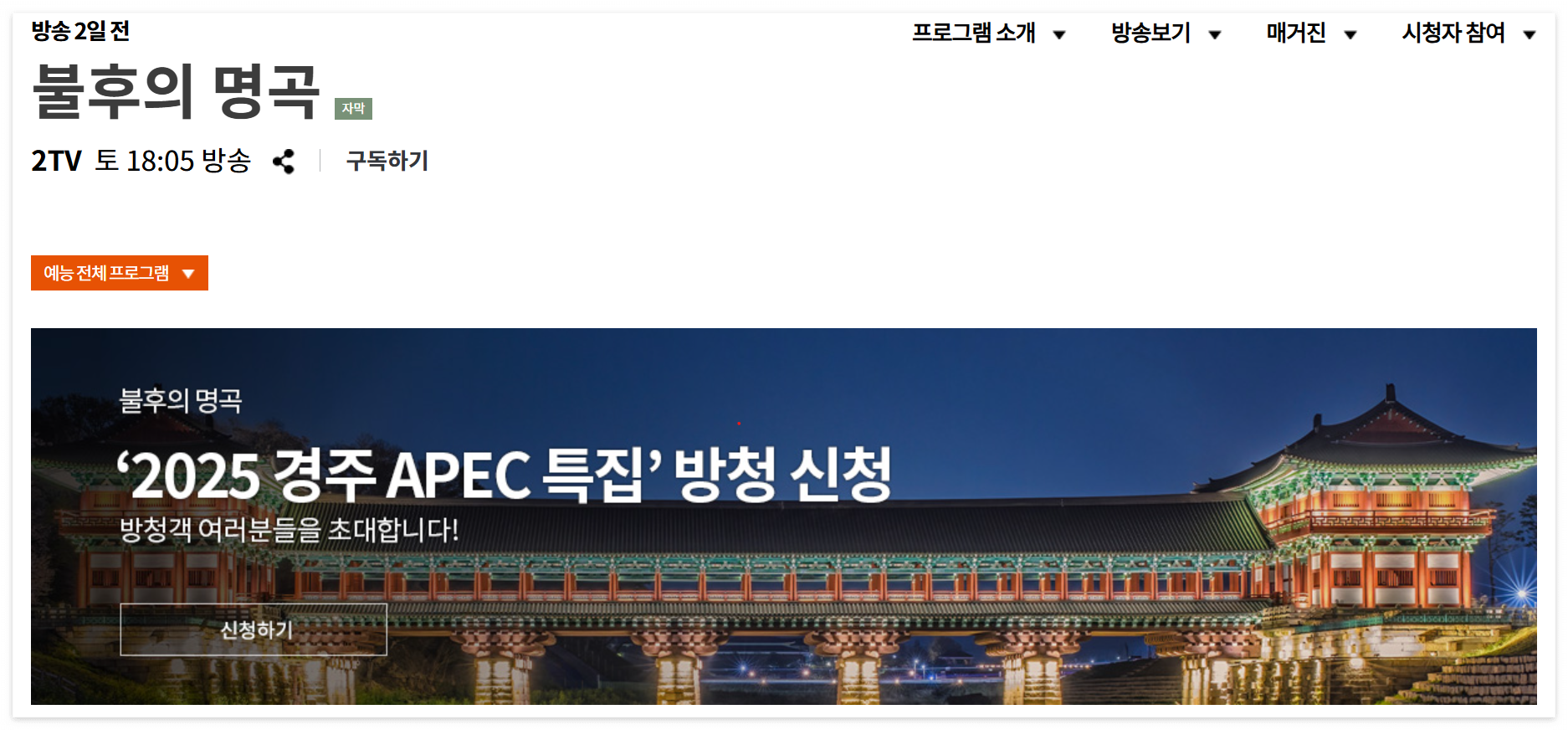 - ‘불후의 명곡’ 프로그램 검색 및 참여 메뉴 클릭