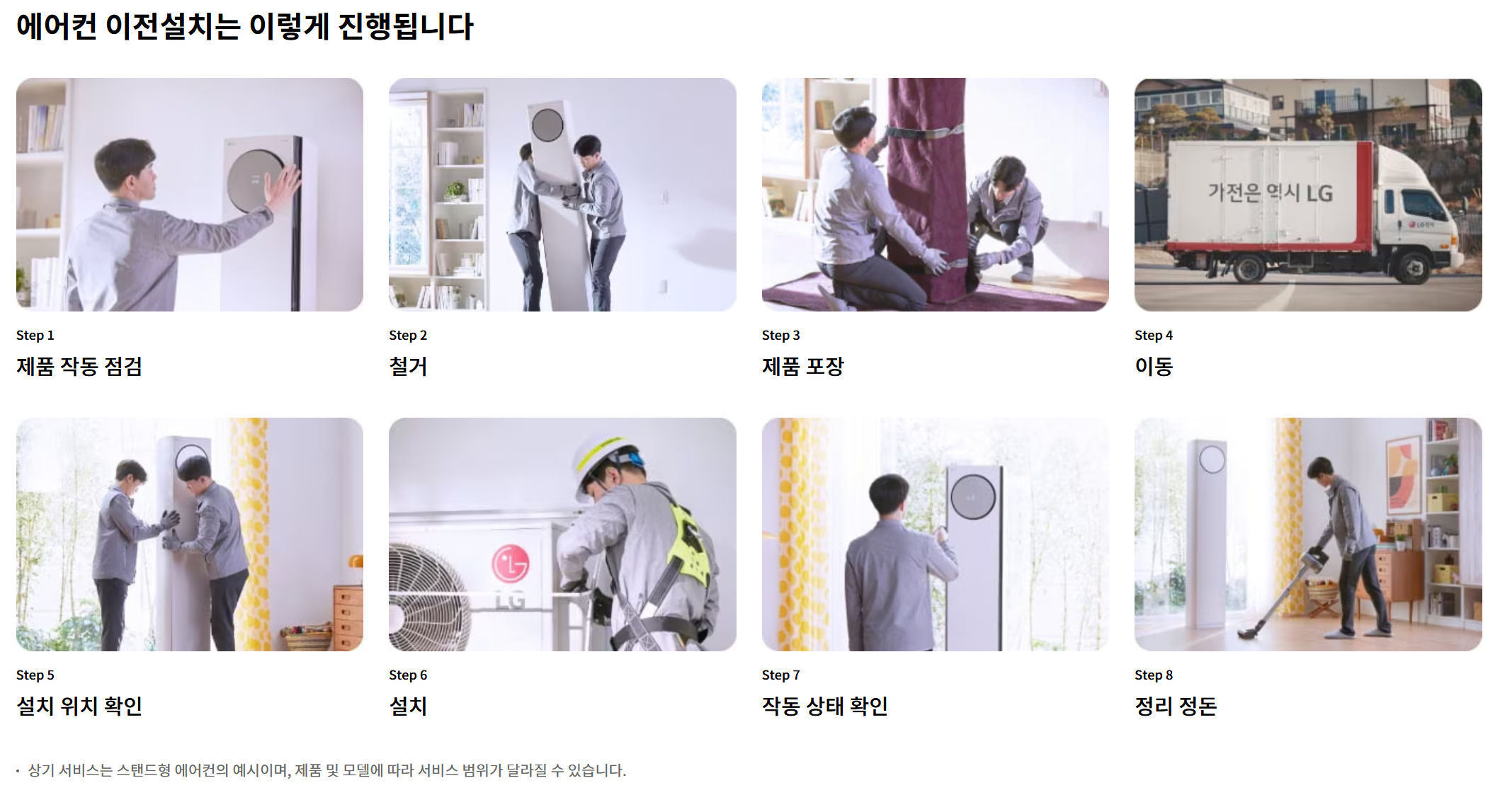 → 일부 오래된 제품은 이전 설치가 불가능하거나 호환 부품이 없을 수 있습니다. - 사다리차 사용 여부 미리 체크