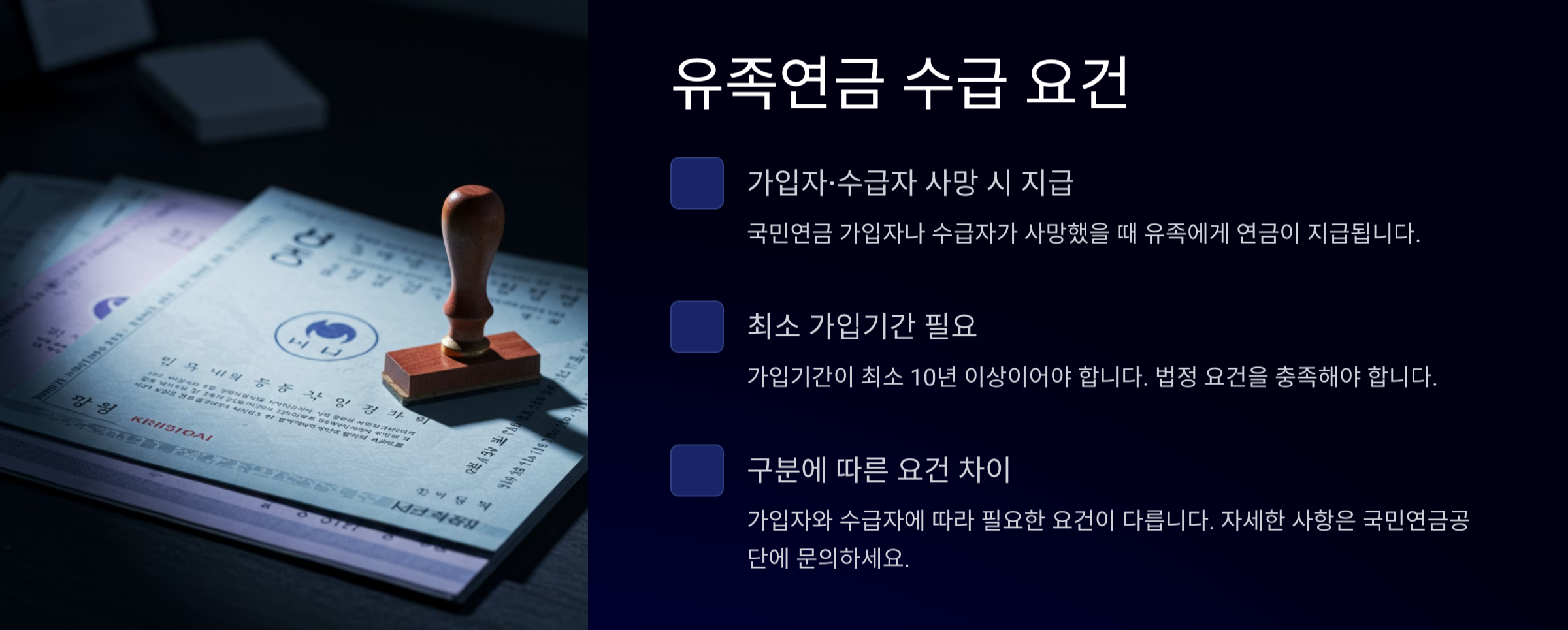 유족연금은 다음 조건을 충족하는 경우 수급할 수 있습니다.