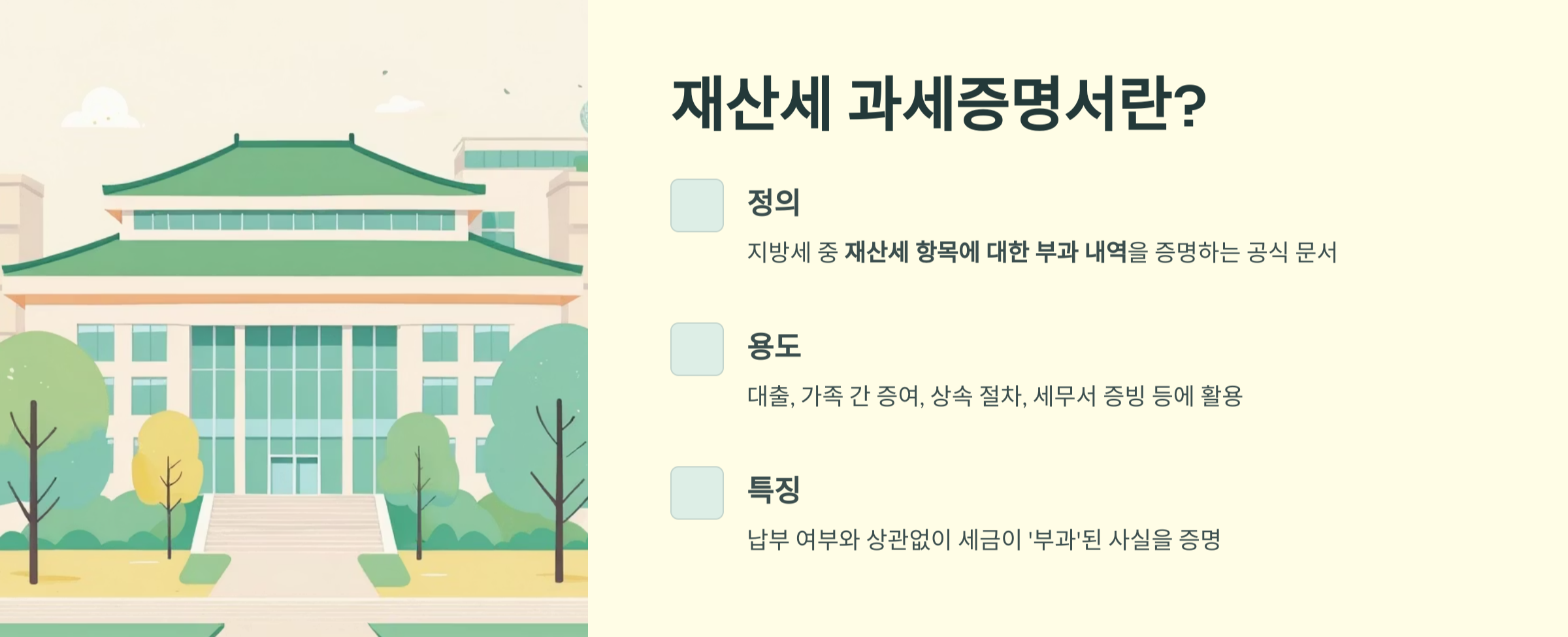 재산세 과세증명서는 부동산을 보유한 개인이 세무서나 금융기관, 관공서에 제출해야 하는 핵심 증빙서류입니다. 특히 대출 심사, 양도소득세 신고, 상속·증여 절차 등에서 반드시 요구되는 문서로, 사전에 정확히 준비하는 것이 중요합니다.