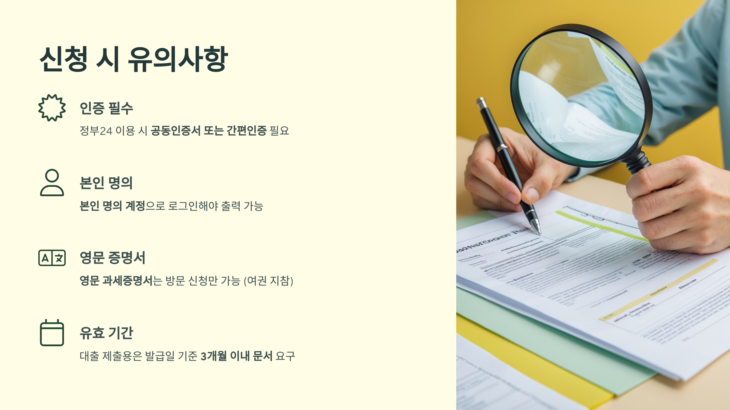 만약 온라인 이용이 어려운 경우에는 가까운 주민센터나 세무서를 통해 신분증 지참 후 현장 발급도 가능하므로, 본인의 상황에 맞춰 방법을 선택하시면 됩니다. 대리인 신청 시에는 위임장과 양측 신분증이 필요합니다.