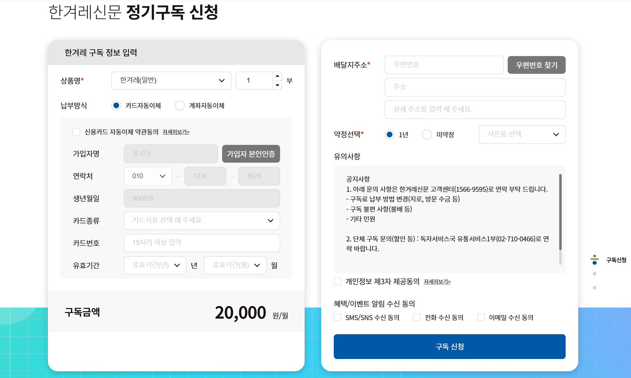 한겨레신문 구독 방식