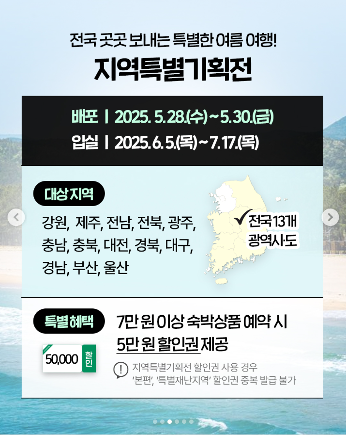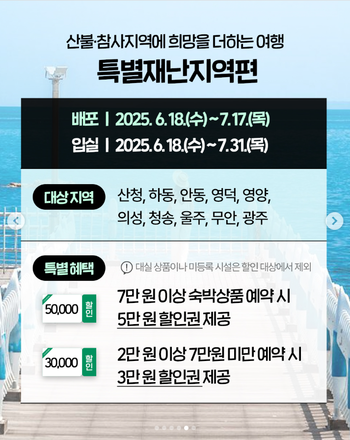 | 할인 금액 | 7만 원 이상 숙소 예약 시 5만원 할인권 제공 |