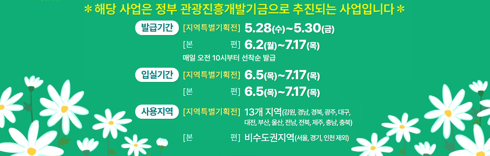 - 참여 숙소: 호텔, 리조트, 콘도, 펜션 등 등록 숙소