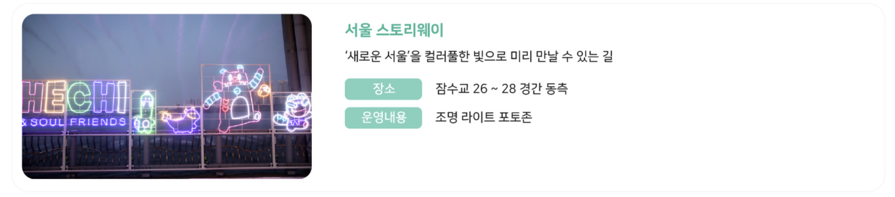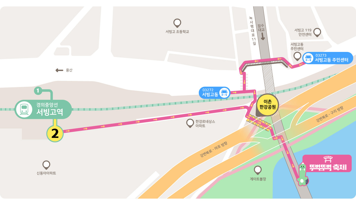 - 축제가 열리는 일요일마다 잠수교 차량 통제가 진행됩니다.