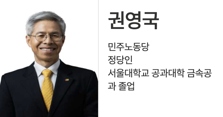 | 5 | 권영국 | 민주노동당 | 노동변호사 / 노동운동가 | 노동권, 평등복지 |