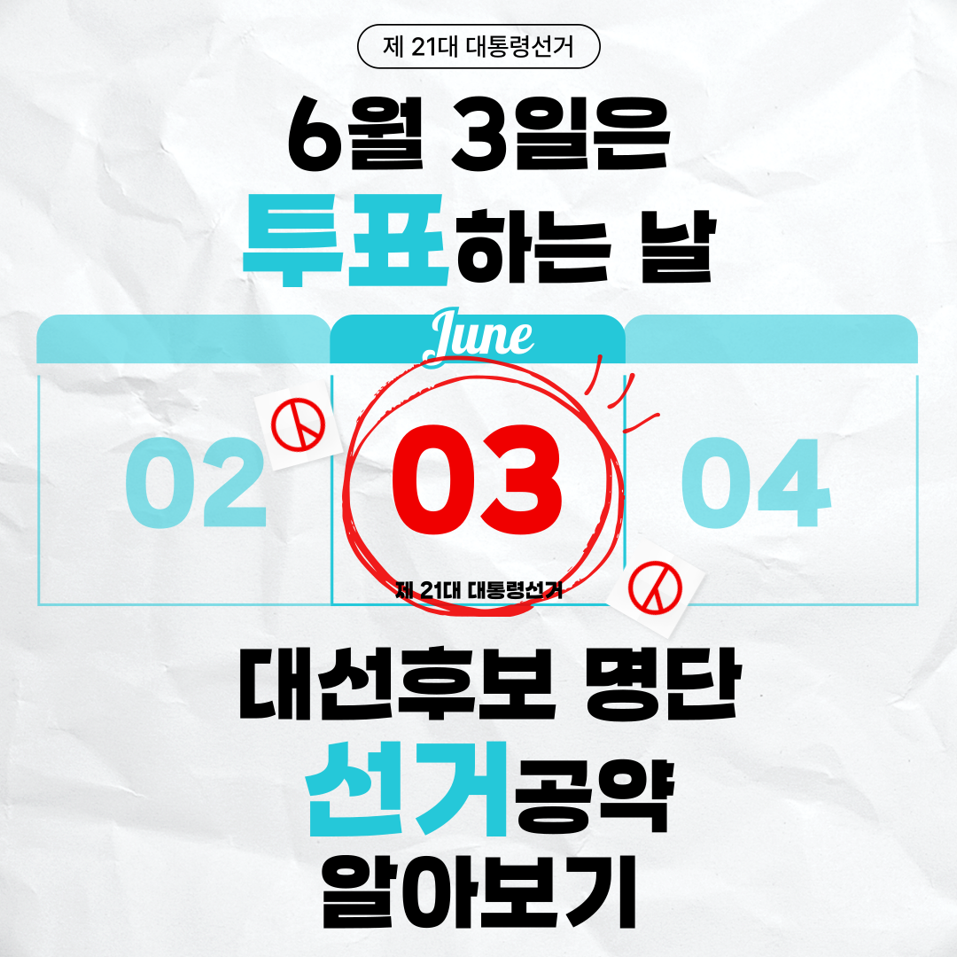 2025년 6월 3일, 제21대 대통령 선거 여러분의 한 표가 정치인에게 권한을 주는 것이 아닌, 국민으로서 당당한 의사를 표현하는 권리임을 잊지 마시고 행사하시길 바랍니다.