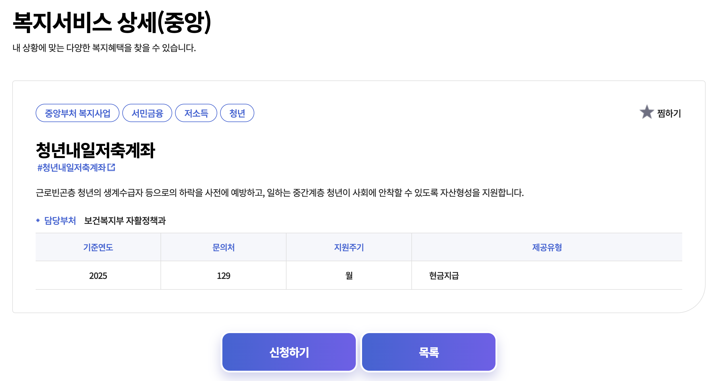 - 복지로 접속 후 “청년내일 저축계좌” 검색