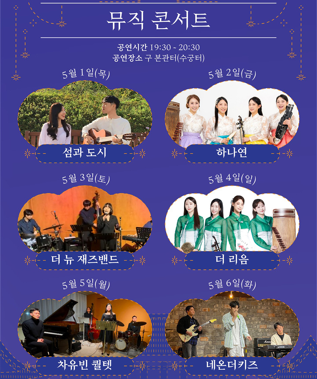 | 5월 6일(화) | 네온더키즈 | 레트로&신스팝 밴드 |